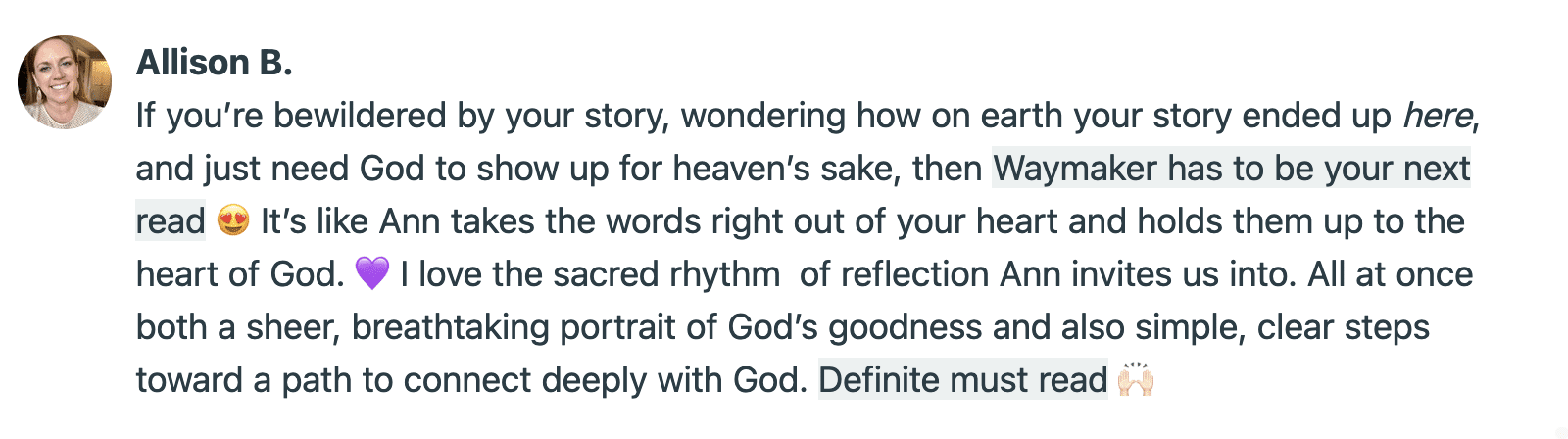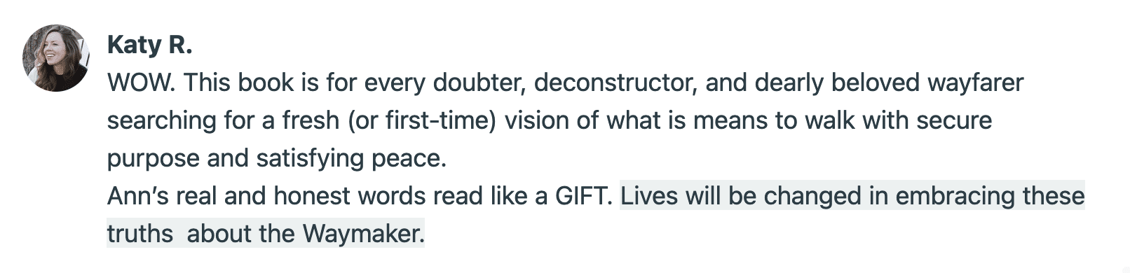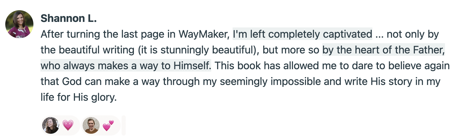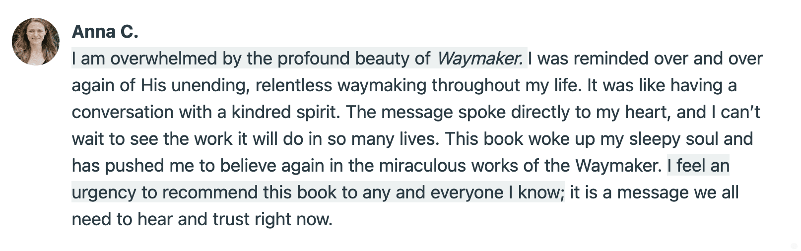 I trust that once you open Waymaker and begin reading, you won’t be able to put it down.